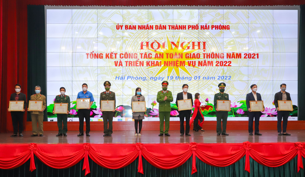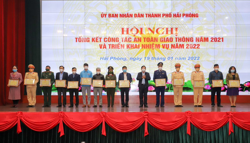 Ghi nhận những thành tích đóng góp trong công tác đảm bảo trật tự ATGT năm 2021, tại Hội nghị này, 14 tập thể và 12 cá nhân được nhận Bằng khen của Chủ tịch UBND thành phố; 10 tập thể và 11 cá nhân được Ban ATGT thành phố trao tặng Giấy khen.