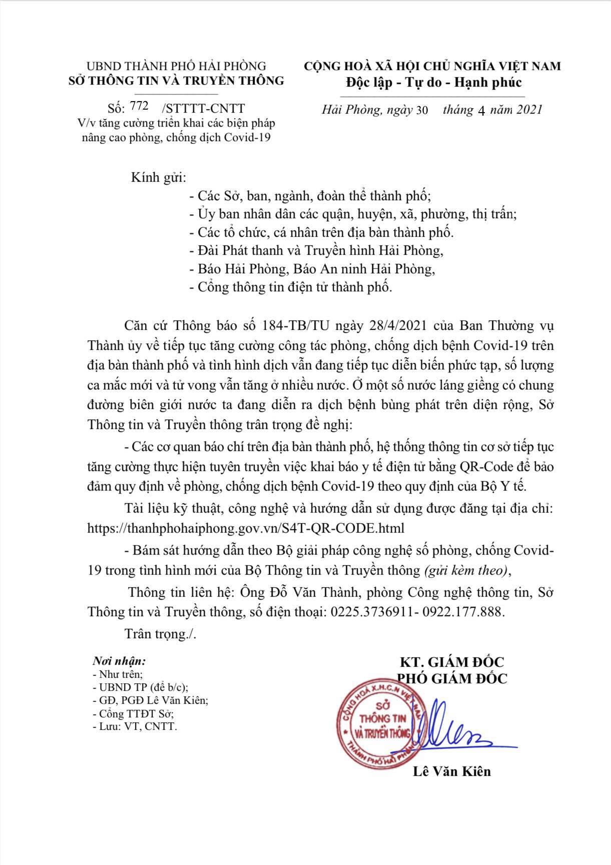 – Bám sát hướng dẫn theo Bộ giải pháp công nghệ số phòng, chống Covid-19 trong tình hình mới của Bộ Thông tin và Truyền thông (gửi kèm theo).