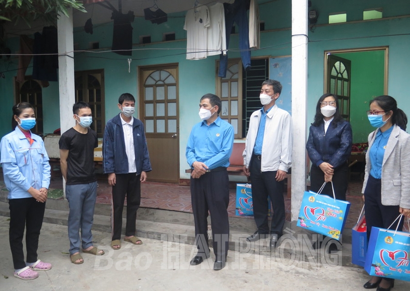 Đoàn thăm, chúc Tết, tặng quà công nhân, lao động ở nhà trọ tại quận Dương Kinh, lãnh đạo LĐLĐ thành phố chúc các công nhân, lao động luôn mạnh khỏe, đón Tết đón Tết vui tươi, an toàn, lành mạnh, tích cực phối hợp chính quyền địa phương, doanh nghiệp thực hiện tốt công tác phòng, chống dịch bệnh COVID-19. Theo thống kê của LĐLĐ quận Dương Kinh, Tết Nguyên đán Nhâm Dần 2022, trên địa bàn quận có khoảng 300 công nhân ngoại tỉnh của các doanh nghiệp không về quê đón Tết.