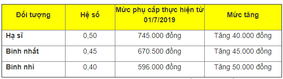 Từ ngày 01/7/2019, mức lương cơ sở mới bắt đầu được áp dụng, không chỉ cán bộ, công chức mà nhiều đối tượng khác, trong đó có hạ sĩ quan, binh sĩ tại ngũ cũng được tăng quyền lợi.