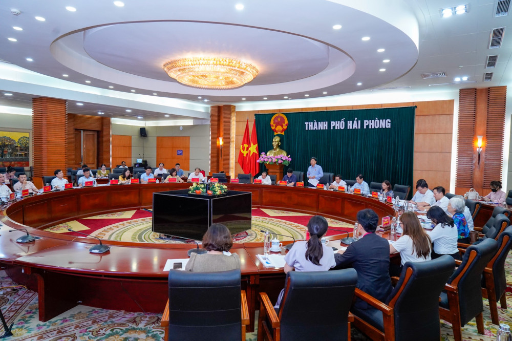 Làm việc với Đoàn công tác, có các đồng chí: Hoàng Minh Cường, Phó Chủ tịch UBND thành phố; Lã Thanh Tân, Phó Trưởng đoàn chuyên trách Đoàn đại biểu Quốc hội thành phố Hải Phòng; cùng lãnh đạo các Sở, ngành chức năng thành phố.