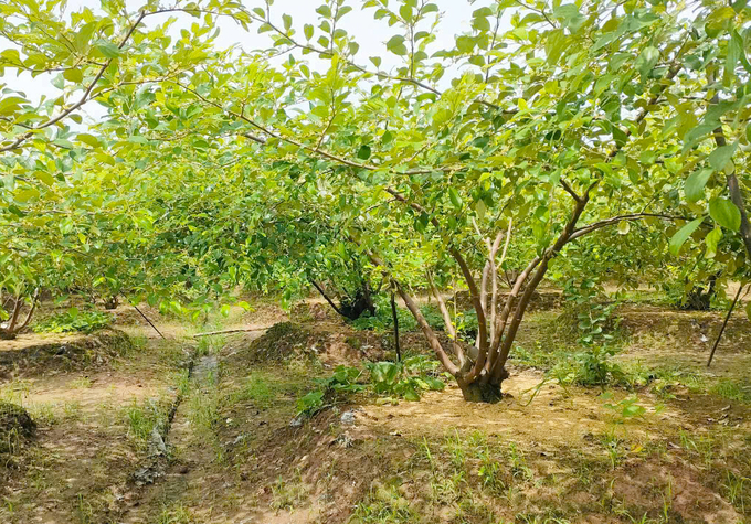 Tại vườn của gia đình ông Bùi Duy Dũng ở tổ dân phố Đồng Tiến 2 (nguyên Bí thư Đảng ủy phường Bàng La), hình ảnh đập vào mắt chúng tôi chính là những cây táo trơ trọi đang lún phún những lộc non, còn phần gốc đã được cắt tỉa và vun xới cẩn thận.