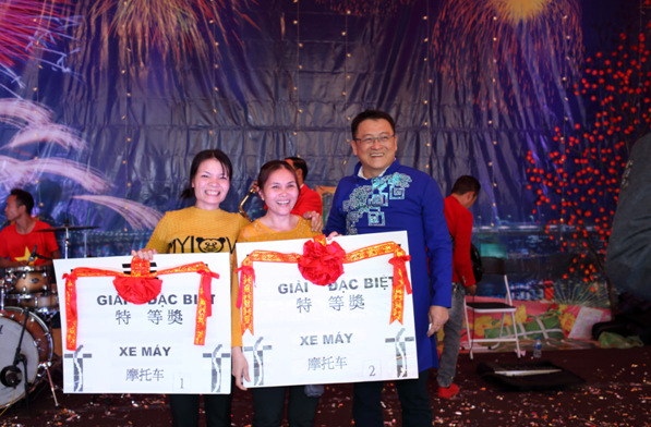 Ông Yang Chen-Ning, đại diện cao cấp của đối tác Đài Loan trao giải đặc biệt cuộc thi bốc thăm trúng thưởng cho công nhân lao động
