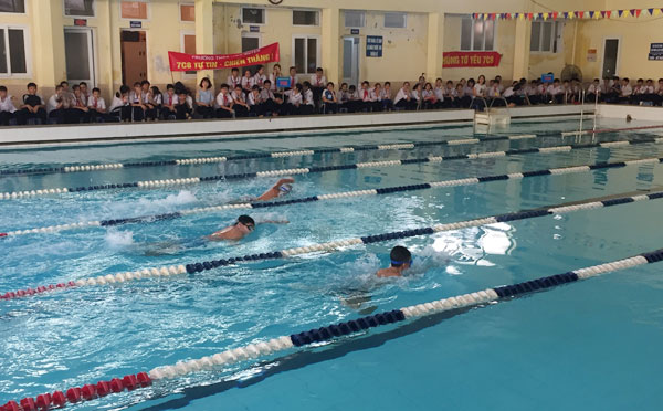 Các em học sinh tham gia giải bơi
