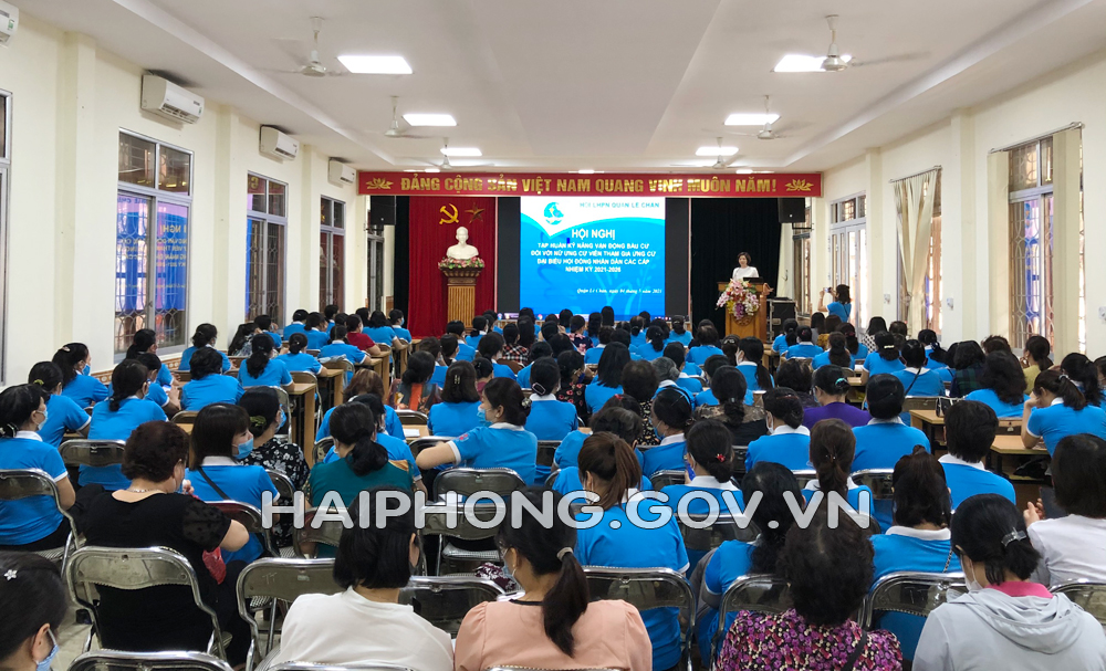 Chiều 4/5, Hội Liên hiệp Phụ nữ (LHPN) quận Lê Chân tổ chức Hội nghị tập huấn kỹ năng vận động bầu cử đối với nữ ứng viên tham gia ứng cử đại biểu HĐND các cấp, nhiệm kỳ 2021-2026; học tập, quán triệt Nghị quyết Đại hội lần thứ XIII của Đảng, Nghị quyết Đại hội Đảng bộ thành phố lần thứ XVI.