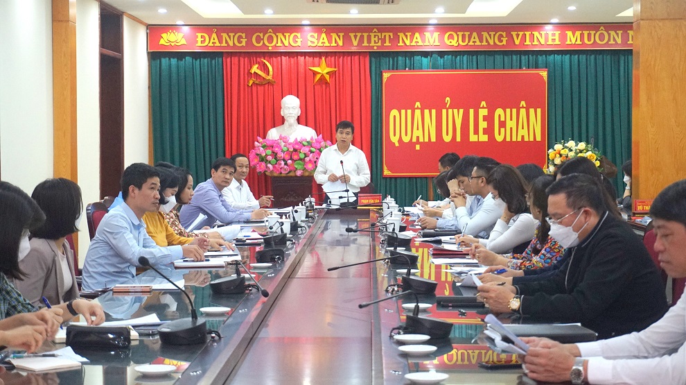 Chiều 19/4, Quận ủy Lê Chân tổ chức hội nghị tập huấn nâng cao chất lượng kết nạp đảng viên tại Đảng bộ, Chi bộ các trường THPT trên địa bàn quận và kết nạp đảng viên với người theo tôn giáo. Đồng chí Phạm Văn Tân, Phó Bí thư thường trực quận ủy chủ trì hội nghị.