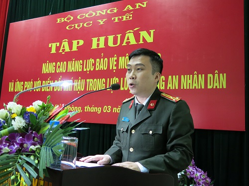 Sáng 18-3, Cục y tế Bộ công an tổ chức lớp tập huấn “Nâng cao năng lực bảo vệ môi trường và ứng phó biến đổi khí hậu trong lực lượng công an nhân dân” tại quận Đồ Sơn. Tham dự buổi lễ khai mạc có Thiếu tướng Nguyễn Khắc Thủy, Phó Cục trưởng H06; Thượng tá, Lê Trung Sơn, Phó giám đốc CATP cùng gần 200 học viên đến từ cơ sở y tế của các đơn vị trực thuộc Bộ công an, các bệnh viện trong công an nhân dân, các bệnh viện, bệnh xá thuộc công an các tỉnh thành phố, các trường, học viện, trại giam, cơ sở giáo dục, trường giáo dưỡng miền Bắc, miền Trung.