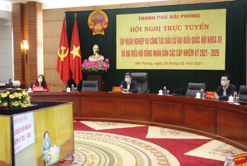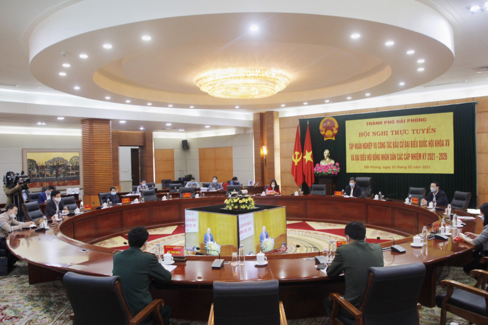 Dự tại điểm cầu thành phố Hải Phòng có các đồng chí: Lê Anh Quân, Phó Chủ tịch Thường trực UBND thành phố, Phó Chủ tịch Uỷ ban bầu cử thành phố; Bùi Đức Quang, Phó Chủ tịch HĐND thành phố, Phó Chủ tịch Uỷ ban bầu cử thành phố và đại diện lãnh đạo các sở, ban, ngành và uỷ viên Uỷ ban bầu cử thành phố.