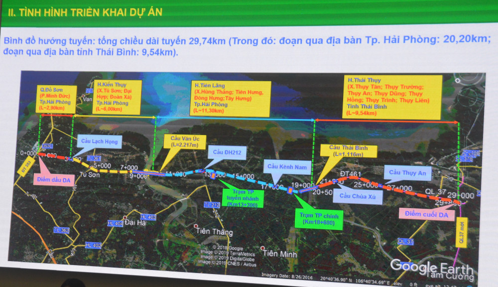 Bình đồ tình hình thực hiện dự án đường ô tô ven biển đoạn thuộc TP Hải Phòng