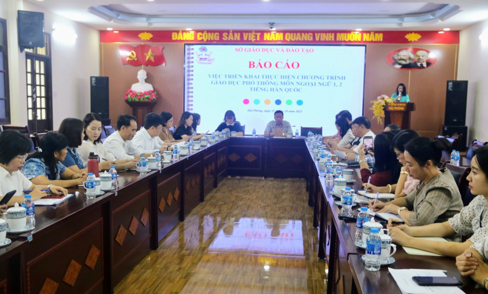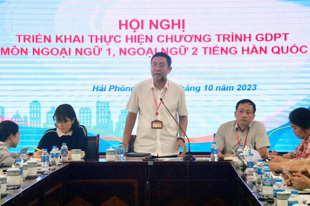 Phát biểu tại Hội nghị, ông Nguyễn Anh Thuấn, Trưởng phòng Giáo dục thường xuyên và Đại học (Sở GD&ĐT) nhấn mạnh, Hải Phòng có nhiều thuận lợi để triển khai thực hiện môn Ngoại ngữ 1, 2 tiếng Hàn Quốc từ năm học 2023-2024, nhất là trong bối cảnh hiện thành phố đang đẩy mạnh thu hút đầu tư từ Hàn Quốc. Việc triển khai dạy học tiếng Hàn Quốc trở thành Ngoại ngữ 1, 2 có nhiều thuận lợi, khi ngành Giáo dục Hải Phòng nhận được sự hỗ trợ đắc lực từ phía Văn phòng đại diện Phòng Giáo dục Hàn Quốc ở nước ngoài tại Việt Nam.