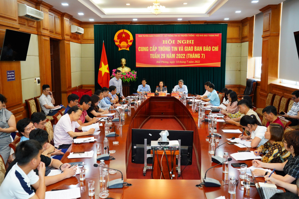 Chiều 14/7, Ban Tuyên giáo Thành ủy chủ trì phối hợp với Sở Thông tin và Truyền thông, Hội Nhà báo thành phố tổ chức Hội nghị giao ban và cung cấp thông tin báo chí định kỳ tuần thứ 29 năm 2022. Đồng chí Đào Khánh Hà, Ủy viên Ban Thường vụ Thành ủy, Trưởng ban Ban Tuyên giáo Thành ủy chủ trì Hội nghị.