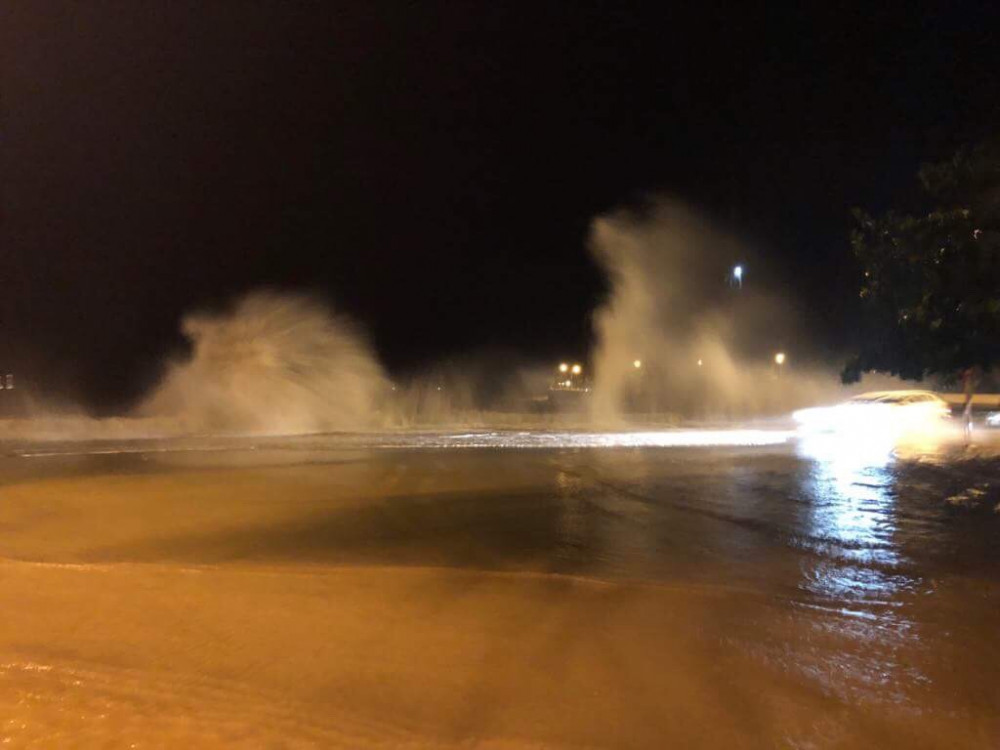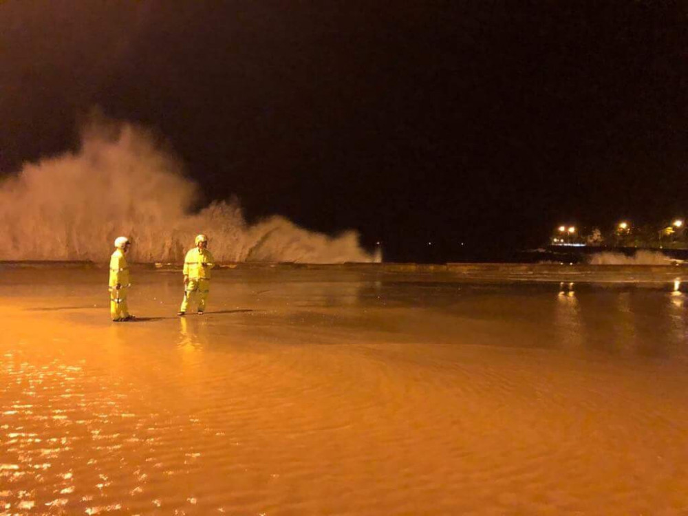 Mực nước triều cường lên cao, kèm sóng lớn