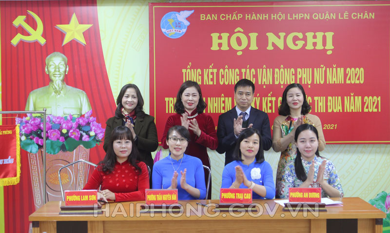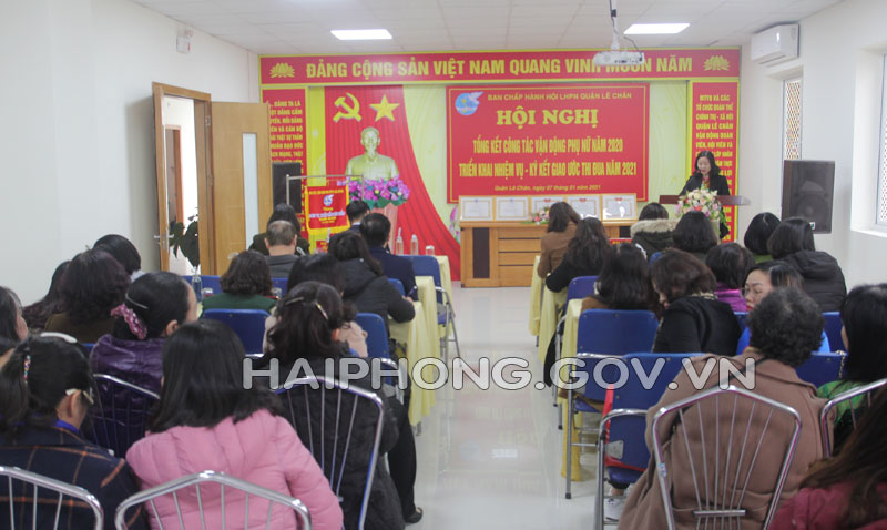 Chiều 7/1, Hội Liên hiệp phụ nữ (LHPN) quận Lê Chân tổ chức Hội nghị tổng kết công tác vận động phụ nữ năm 2020; triển khai nhiệm vụ, ký giao ước thi đua năm 2021. Tới dự có đồng chí Vũ Thị Kim Liên, Ủy viên Thành ủy, Chủ tịch LHPN thành phố.