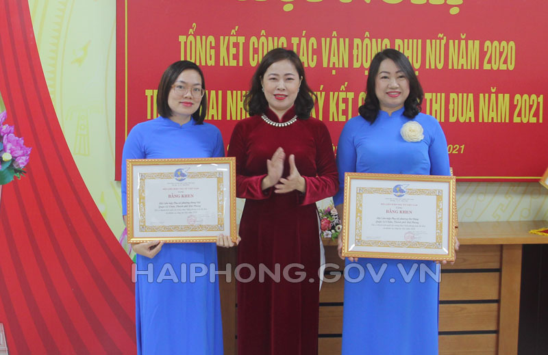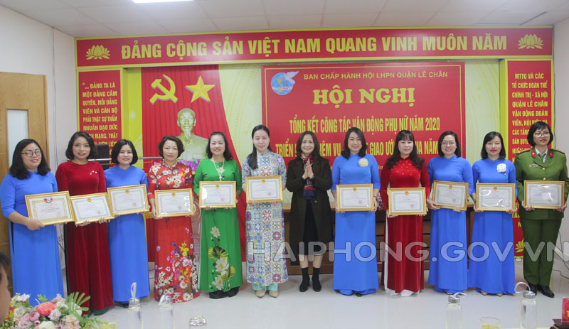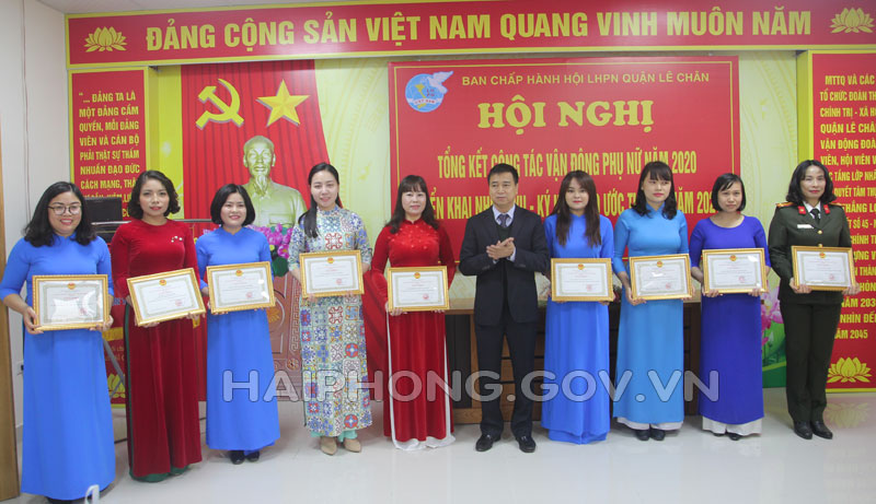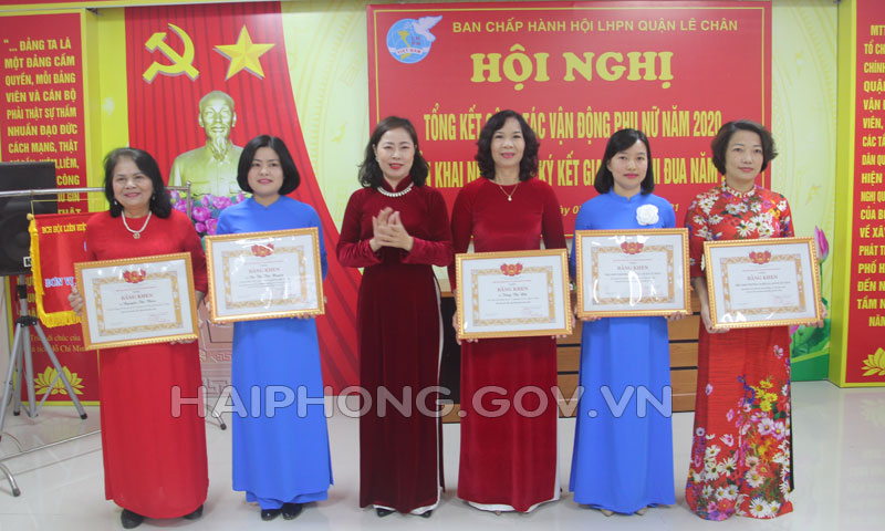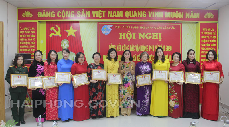 Nhân dịp này, nhiều tập thể, cá nhân được nhận Bằng khen, Giấy khen của Trung ương Hội LHPN Việt Nam, Hội LHPN thành phố, UBND quận Lê Chân và Hội LHPN quận Lê Chân.