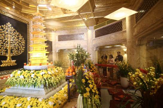 Ngày 02/2/2019, trong không khí đón một mùa xuân tràn đầy sức sống mới trên miền cao Tây Bắc, du khách và Phật tử bốn phương hoan hỉ chiêm bái xá lợi Phật linh thiêng được đặt trang trọng và tôn nghiêm trong lòng Đại tượng Phật A Di Đà, bức tượng Phật bằng đồng cao nhất Việt Nam nằm trong quần thể tâm linh kỳ vĩ trên đỉnh Fansipan.