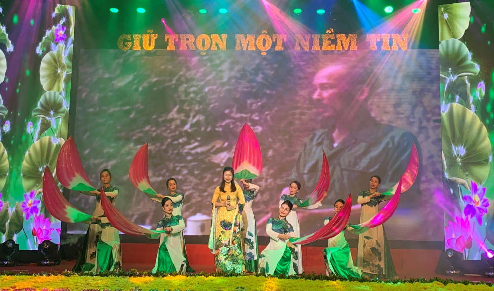 Trong phần mở đầu chương trình, khán giả được thưởng thức những nhạc phẩm về Đảng như: “Đảng cho ta cả Mùa Xuân”, sáng tác Phạm Tuyên; “Đảng là cuộc sống của tôi”, sáng tác Nguyễn Đức Toàn; “Lá cờ Đảng”, “Đảng cho ta sáng mắt sáng lòng”, sáng tác Phạm Tuyên; “Mùa xuân dâng Đảng”, sáng tác Bùi Đình Thảo. Phần 2 và phần 3 chương trình với giai điệu sâu lắng, ngọt ngào, mỗi nốt nhạc, bài ca chứa đựng biết bao tình cảm nhớ thương, biết ơn sâu sắc của nhân dân cả nước nói chung và những người con thành phố Hoa phượng đỏ nói riêng dành cho vị Cha già muôn vàn kính yêu của cả dân tộc. Đó là các nhạc phẩm “Bác Hồ một tình yêu bao la” – Thuận Yến, “Ca ngợi Hồ Chủ tịch” – Văn Cao; “Người là niềm tin tất thắng” – Chu Minh; “Lời ca dâng Bác” – Trọng Loan, “Vang tiếng Bác giữa mùa thu đất Cảng” – Tuấn Phương, “Hải Phòng đón Bác” – Đồng Dương Chiều… Chương trình khép lại bằng những nhạc phẩm chan chứa tình yêu quê hương đất nước như: “Đất nước tình yêu” – Lệ Giang, “Trái tim Việt Nam” – Hồ Trọng Tuấn, “Hương sắc xuân” – Tuấn Phương…