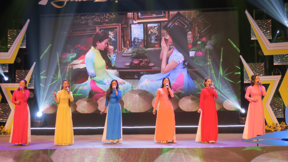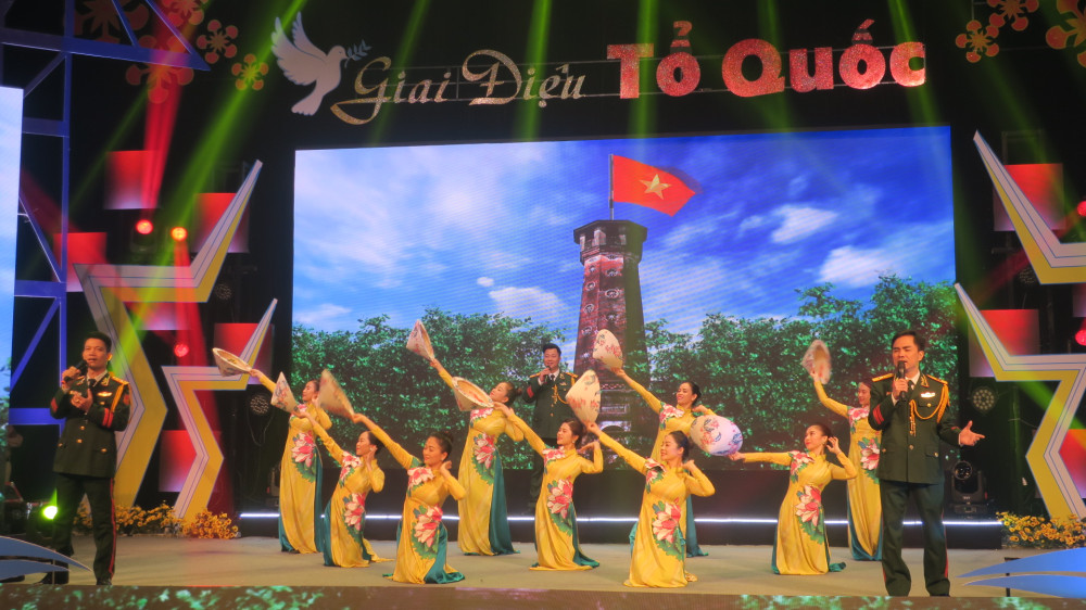 Trong đó, Chương I. “Bài ca thống nhất” với các tiết mục “Mùa chim én bay” (Hoàng Hiệp-Diệp Minh Tuyền), “Giai điệu tổ quốc” (Trần Tiến), “Tình ca đất nước” (Phan Nhân-Trần Khánh), “Bài ca thống nhất”, (Võ Văn Di), liên khúc “Ca ngợi tổ quốc-Đất nước trọn niềm vui” (Hoàng Vân-Hoàng Hà). Chương II. “Rạng rỡ Việt Nam” với các tiết mục “Non nước hữu tình” (Thanh Sơn), “Hát lên tôi yêu Việt Nam” (Huyền Ngọc-Vũ Tuấn), “Đường lên phía trước” (Tiến Minh), “Tự hào hai tiếng Việt Nam” (Bùi Hoàng Uyên Minh), “Về Hải Phòng cùng anh” (Phạm Trường-Vũ Tuấn), “Hải Phòng niềm kiêu hãnh” (Xuân Bình)…