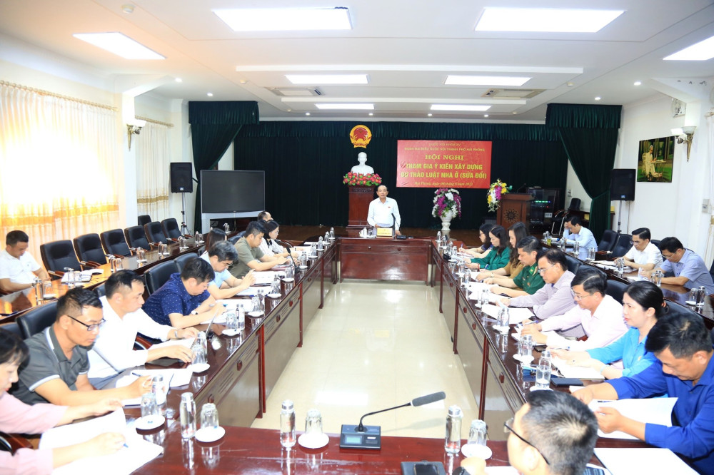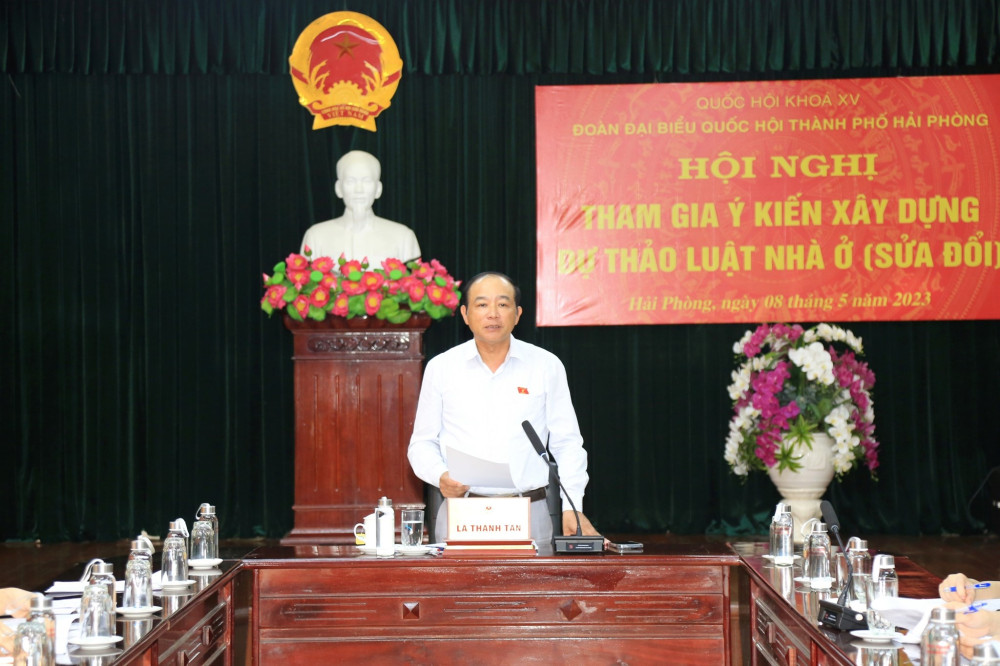 Chiều 8/5, Phó Trưởng đoàn Đại biểu Quốc hội chuyên trách thành phố Hải Phòng Lã Thanh Tân chủ trì Hội nghị tham gia ý kiến xây dựng dự thảo Luật Nhà ở (sửa đổi). Cùng dự có đại diện các ngành, địa phương. Đây là Dự án luật sẽ được Quốc hội khoá 15 cho ý kiến lần đầu tại Kỳ họp thứ 5 sắp tới.