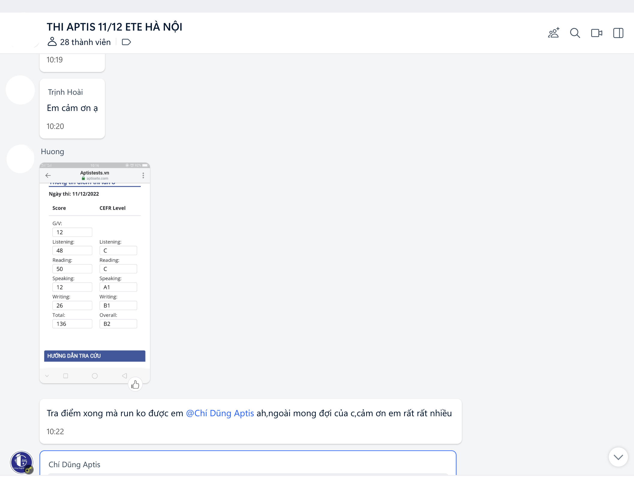 Thậm chí, Dũng còn dặn dò chúng tôi: “Vì đợt này Aptis bị Bộ GDĐT để ý nên hay có thanh tra… Vì vậy yêu cầu mọi người ngày mai đi học và đi thi hết sức nghiêm túc… Yêu cầu không thắc mắc linh tinh về đề thi hay sự sắp xếp lịch học off của trung tâm… Đặc biệt là đi học đúng giờ và đúng địa chỉ như thông báo”.