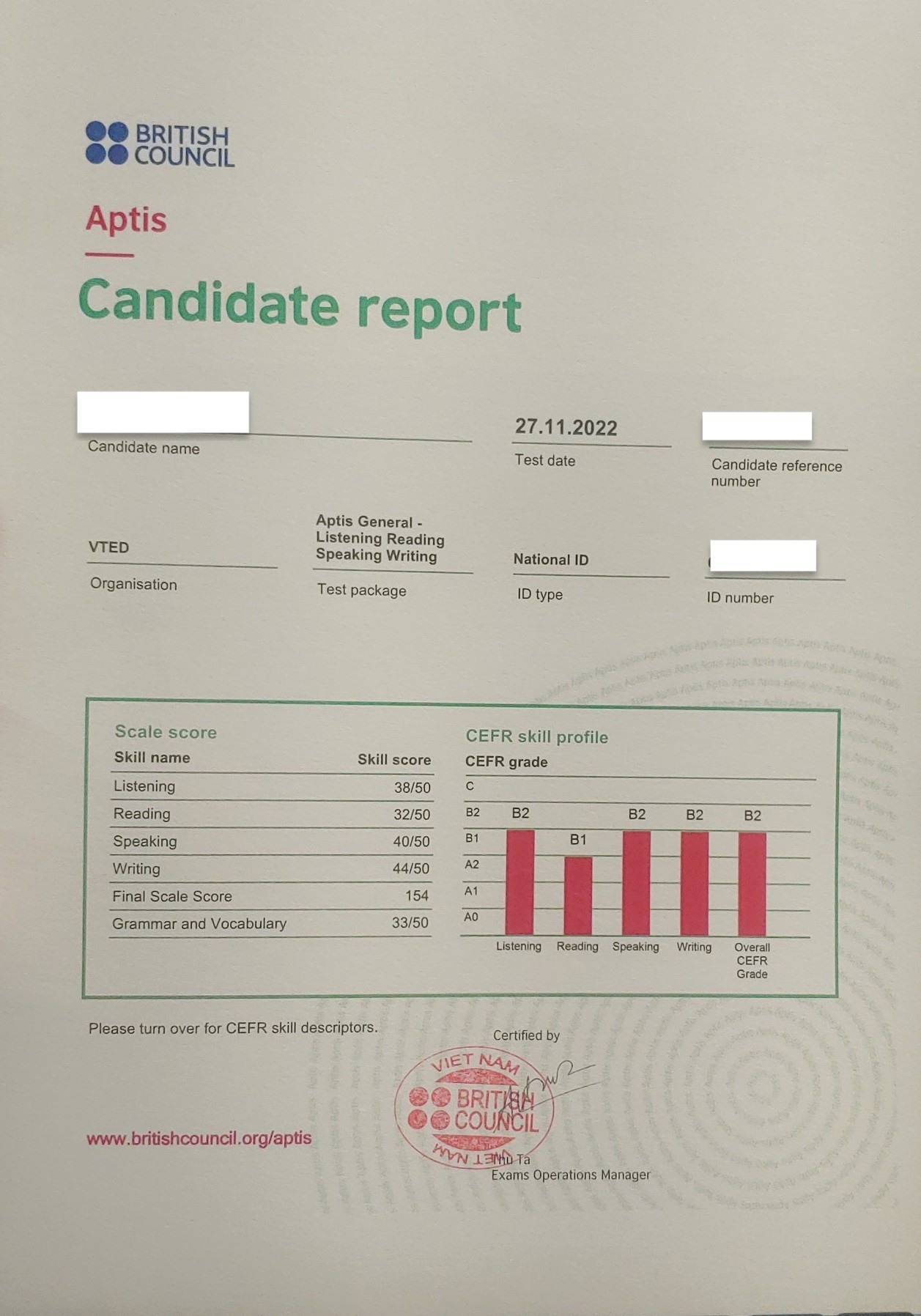 Vào ngày 27.11.2022, sau khi hoàn tất các thủ tục đóng tiền cho người có tên là Quách Chí Dũng, chúng tôi được hẹn đến địa điểm tại số nhà 4B Ngõ Quỳnh, Bạch Mai, Hai Bà Trưng, Hà Nội để học thuộc đáp án. Sau 2 tiếng ngồi học, chúng tôi và các học viên được các đối tượng hướng dẫn di chuyển đến địa điểm tòa nhà của Trung tâm ngoại ngữ VTED English và Hội đồng Anh tại phố Khúc Thừa Dụ, quận Cầu Giấy, Hà Nội để tham dự kỳ thi.