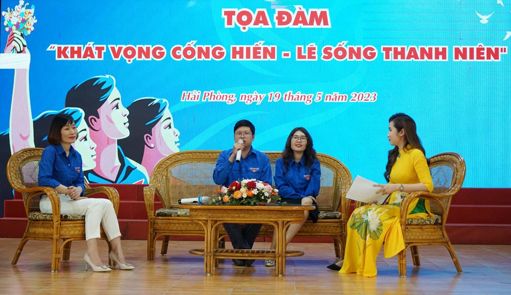 Tại chương trình, Thành đoàn Hải Phòng đã tổ chức Toạ đàm “Khát vọng cống hiến, Lẽ sống Thanh niên”. Tại Tọa đàm, hơn 100 đoàn viên, thanh niên tham gia Liên hoan giao lưu, chia sẻ cởi mở với những tấm gương điển hình trong học tập, lao động, tình nguyện xung kích vì cộng đồng. Đây là dịp các đoàn viên, thanh niên chia sẻ, trao đổi những vấn đề liên quan đến khát vọng, lẽ sống của thanh niên hiện nay, gửi gắm những thông điệp, quan điểm về lý tưởng sống, con đường phấn đấu rèn luyện của bản thân đến các bạn đoàn viên, thanh niên.