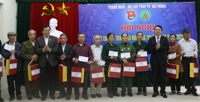 Phó chủ tịch UBND TP Lê Khắc Nam và lãnh đạo Hội cựu TNXP tặng quà các cựu TNXP