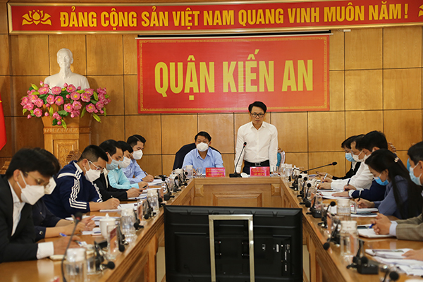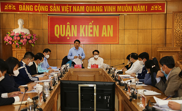 Sau khi nghe các đơn vị của quận báo cáo tình hình phòng, chống dịch COVID-19 trên địa bàn quận Kiến An, đồng chí Lê Trí Vũ, Ủy viên Ban Thường vụ Thành ủy, Trưởng ban Dân vận Thành ủy ghi nhận sự cố gắng nỗ lực của cả hệ thống chính trị và sự đồng thuận của nhân dân quận, đặc biệt là các cán bộ cơ sở. Để công tác phòng, chống dịch đồng bộ, hiệu quả, đồng chí yêu cầu các cơ quan báo chí tập trung công tác tuyên truyền, vận động nhân dân thực hiện các biện pháp phòng, chống dịch 5K theo hướng dẫn của Bộ Y tế, hạn chế đi lại, hạn chế người tham gia đám hiếu, hỷ; rà soát người đi và đến tại Tổ dân phố. Chuẩn bị các điều kiện về nhân lực, trang thiết bị y tế để thành lập các Trạm y tế lưu động tại các phường và Tổ COVID-19 cộng đồng; rà soát việc tiêm vắc xin. Quận dành thời gian và nguồn lực quan tâm tới các gia đình cán bộ, nhân viên y tế tuyến đầu thực hiện công tác phòng, chống dịch.