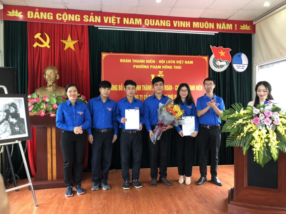 Thực hiện chương trình công tác Đoàn – Hội và phong trào thanh niên năm 2019, thực hiện Nghị quyết 28-NQ/TU của Ban Thường vụ Thành ủy về “Xây dựng, củng cố và phát triển tổ chức Đảng, Đoàn thể trong các loại hình doanh nghiệp ngoài nhà nước, hợp tác xã, đơn vị sự nghiệp ngoài công lập”, sáng 10-5, Ban chấp hành Đoàn phường Phạm Hồng Thái đã tổ chức lễ công bố quyết định thành lập Chi đoàn – Chi hội thanh niên Công ty CP Vật tư Phú Quý.