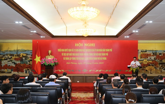 Sáng 9-9, Văn phòng UBND thành phố tổ chức Hội nghị triển khai Quyết định số 2115/QĐ-UBND ngày 06/9/2019 của UBND thành phố về việc hợp nhất Nhà khách thành phố vào Trung tâm Hội nghị thành phố và thành lập Trung tâm Hội nghị và Nhà khách thành phố Hải Phòng. Phó Chủ tịch Thường trực UBND thành phố Nguyễn Xuân Bình tới dự và chủ trì Hội nghị. Cùng tham dự có lãnh đạo Văn phòng UBND thành phố, sở, ngành, cơ quan và đơn vị liên quan.