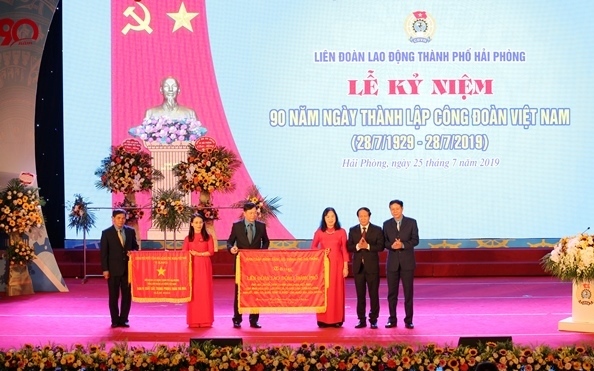 Nhân dịp này, Liên đoàn Lao động thành phố Hải Phòng vinh dự được Chính phủ tặng Cờ thi đua “Đơn vị xuất sắc trong phong trào thi đua năm 2018”; Ban chấp hành Đảng bộ thành phố tặng bức trướng “Phát huy truyền thống 90 năm Công đoàn Việt Nam – công nhân, viên chức, lao động và tổ chức công đoàn Hải Phòng đoàn kết, sáng tạo, đi đầu trong sự nghiệp công nghiệp hóa, hiện đại hóa”; Tổng liên đoàn Lao động Việt Nam tặng kỷ niệm chương cho 102 đồng chí có thành tích xuất sắc trong công tác Công đoàn của thành phố Hải Phòng.