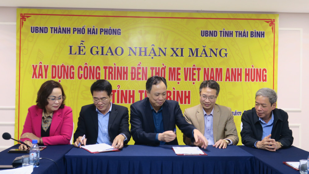 Phát biểu tại Lễ giao nhận, đồng chí Trần Văn Huy, Phó Giám đốc Sở Lao động Thương binh và Xã hội cho biết việc hỗ trợ xi măng xây dựng công trình Đền thờ Mẹ Việt Nam anh hùng tỉnh Thái Bình thể hiện tình cảm sâu sắc của Đảng bộ, chính quyền và nhân dân thành phố Hải Phòng đối với Đảng bộ, chính quyền và nhân dân tỉnh Thái Bình, đặc biệt bày tỏ lòng tri ân sâu sắc đối với Bà mẹ Việt Nam Anh hùng, nhất là với các Bà mẹ đã qua đời nhưng không có người kế tự, thờ tự, hương khói chu đáo theo đúng phong tục tập quán người Việt Nam. Đồng thời, công trình có ý nghĩa giáo dục ý thức cách mạng cho thế hệ trẻ hôm nay và mai sau.