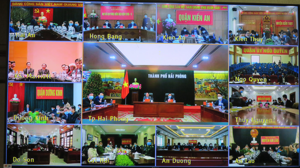 Chiều 29/1, Ban thường vụ Thành ủy họp trực tuyến về công tác phòng, chống dịch COVID-19. Đồng chí Lê Văn Thành, Ủy viên Trung ương Đảng, Bí thư Thành ủy chủ trì Hội nghị tại điểm cầu thành phố Hà Nội, cùng dự có các đồng chí Đại biểu thành phố Hải Phòng dự Đại hội Đảng toàn quốc lần thứ XIII.