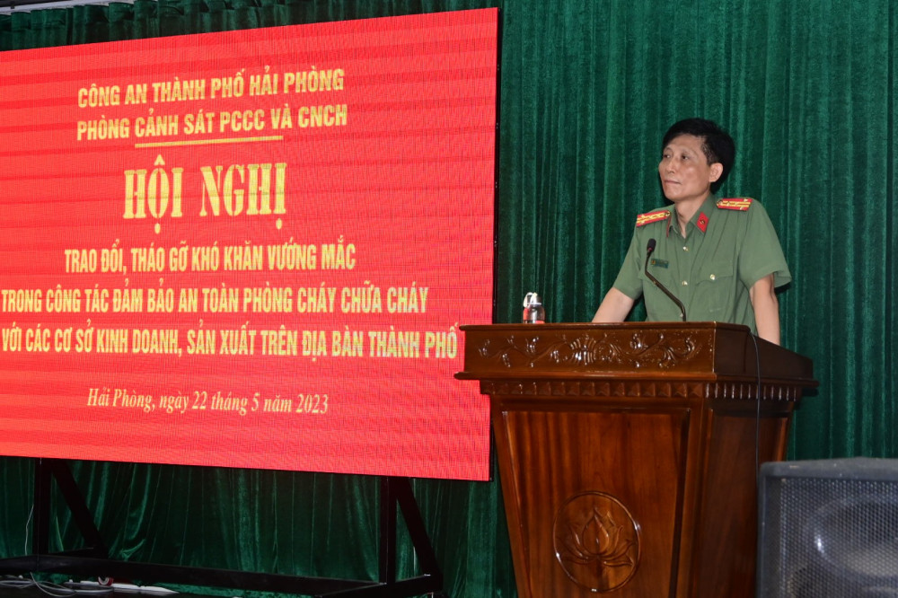 Sáng 22/5, Phòng Cảnh sát Phòng cháy chữa cháy và Cứu nạn cứu hộ, Công an thành phố tổ chức Hội nghị trao đổi, tháo gỡ khó khăn vướng mắc trong công tác đảm bảo an toàn PCCC đối với các cơ sở kinh doanh, sản xuất trên địa bàn thành phố.