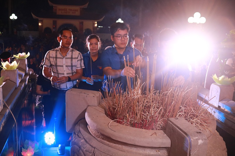 Khép lại buổi lễ, các đồng chí lãnh đạo, đại biểu và toàn thể nhân dân, đoàn viên thanh thiếu nhi thành phố đã dâng hương, hoa trên từng phần mộ các liệt sĩ…