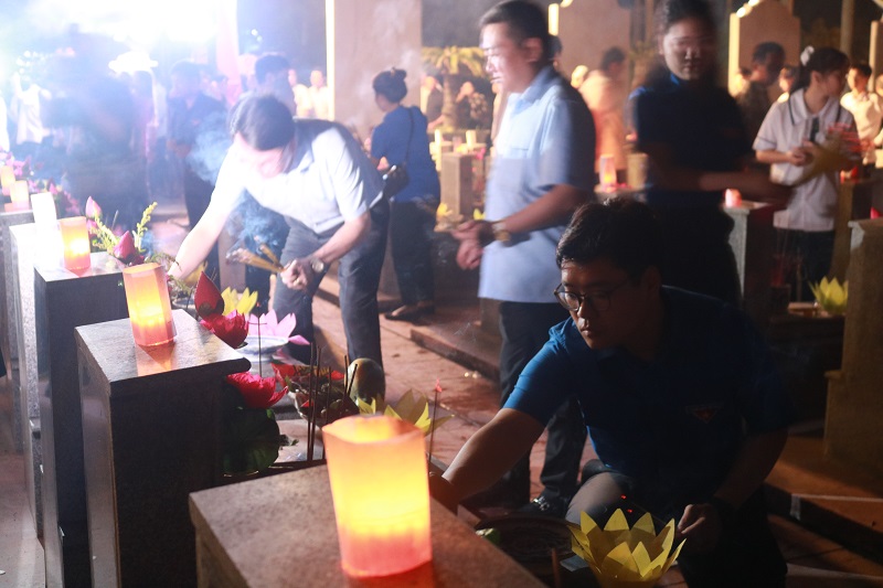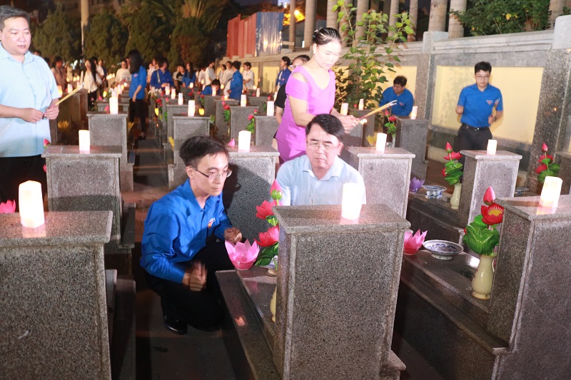 Lễ thắp nến tri ân các anh hùng liệt sĩ diễn ra đồng loạt toàn thành phố vào tối 26/7 với nghĩa cử “Mỗi ngọn nến thắp sáng – Vạn tấm lòng tri ân“. Thay mặt tuổi trẻ thành phố, trước anh linh các Anh hùng, Liệt sĩ, đồng chí xin hứa: Thời gian tới, Thành đoàn – Hội LHTN Việt Nam thành phố sẽ tăng cường chỉ đạo các cấp bộ Đoàn, Hội tổ chức các hoạt động giáo dục truyền thống cho đoàn viên, thanh thiếu nhi; khơi dậy lòng tự hào dân tộc, phát huy truyền thống tương thân, tương ái, chăm sóc, phụng dưỡng các Mẹ Việt Nam Anh hùng; giúp đỡ các thương – bệnh binh, con em gia đình chính sách có hoàn cảnh khó khăn; phát huy tinh thần xung kích, tình nguyện của tuổi trẻ để đảm nhận những nhiệm vụ mới, những việc khó mà đất nước và thành phố đang đặt ra; quyết tâm học tập, rèn luyện, phấn đấu để xây dựng đất nước, thành phố ngày càng giàu đẹp, văn minh, hiện đại.