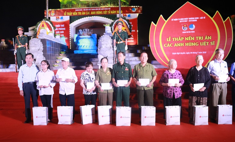 Tối 26-7, tại Nghĩa trang Liệt sĩ quận Ngô Quyền, Ban Thường vụ Thành đoàn tổ chức “Lễ thắp nến tri ân các Anh hùng, Liệt sĩ” năm 2020 cấp thành phố. Dự lễ thắp nến tri ân có các đồng chí: Cao Xuân Liên – Trưởng ban Dân vận Thành ủy, Chủ tịch Ủy ban MTTQ Việt Nam TP; Lê Khắc Nam – Phó Chủ tịch UBND TP; Đào Khánh Hà – Trưởng Ban Tuyên giáo Thành ủy; Đào Phú Thùy Dương – Bí thư Thành đoàn; đại diện lãnh đạo các Sở, ban, ngành, đoàn thể thành phố; lãnh đạo quận Ngô Quyền, phường Đằng Giang; đại diện Cty TNHH LG Display Việt Nam và đại diện các gia đình thân nhân Liệt sĩ, gia đình có công với cách mạng trên địa bàn quận Ngô Quyền, cùng hơn 400 ĐVTN, thiếu nhi quận.