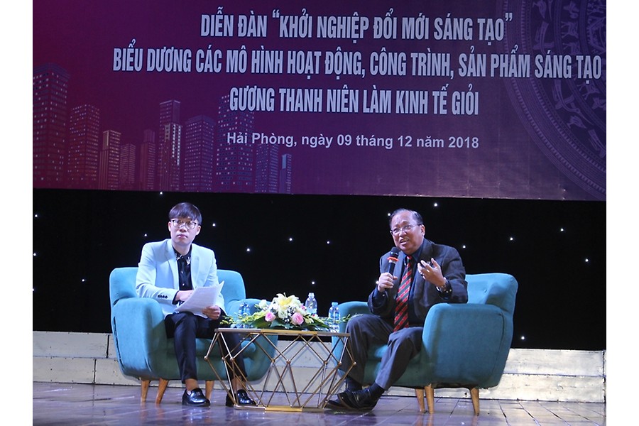 Đây là chia sẻ của GS. Hà Tôn Vinh, cố vấn cao cấp, giảng viên dạy chuyên đề quản lý tại Khoa Quản trị kinh doanh (Đại học Quốc gia Hà Nội), Chủ tịch và Tổng giám đốc Tổ hợp giáo dục, đào tạo và tư vấn quốc tế Stellar Management tại “Diễn đàn Khởi nghiệp đổi mới sáng tạo” do Thành Đoàn Hải Phòng tổ chức chiều 9-12. Hơn 400 đoàn viên thanh niên thành phố dự.