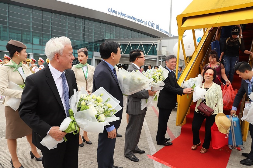 Lãnh đạo thành phố đón hành khách đi máy bay đến Hải Phòng