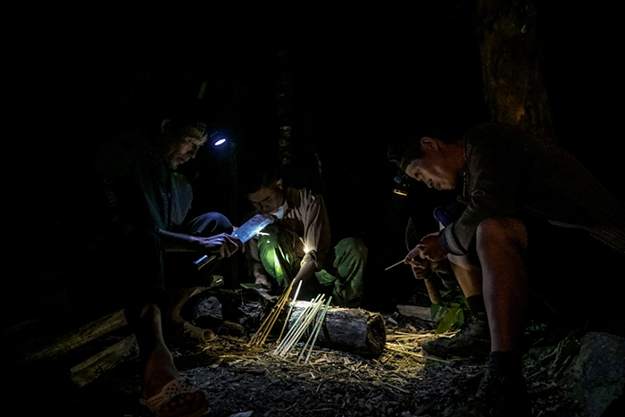 “Cực nhất là những ngày mưa, trời vừa lạnh, đường lại trơn. Bọn em đi, bò, lăn, leo đủ cả mà lại còn phải ‘canh’ vắt. Về sau, đi rừng nhiều, mỗi đoạn dừng chân cả nhóm mới kiểm tra và bắt vắt một thể cho đỡ… mất công,” Luật cười híp mắt trào phúng.