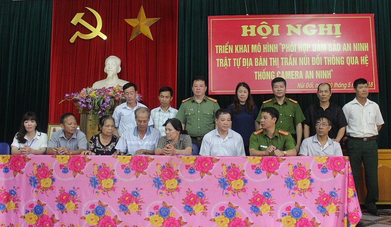 Đại diện các đơn vị ký quy chế triển khai mô hình “Phối hợp bảo đảm ANTT địa bàn thị trấn Núi Đối thông qua hệ thống Camera an ninh”.