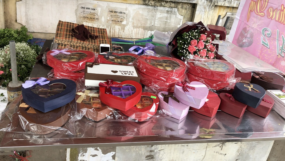 Ngoài hoa thì những mặt hàng truyền thống như sôcôla, bưu thiếp với sự đa dạng về mẫu mã và giá cả vẫn được nhiều người tiêu dùng lựa chọn. Hiện trên thị trường bày bán rất nhiều loại sôcola được giới thiệu của Mỹ, Bỉ, Pháp và cả Việt Nam với giá dao động từ 95.000 đồng đến 850.000 đồng một hộp. Được ưa chuộng và lựa chọn nhiều nhất là những mẫu Sôcôla có khắc chứ với hình dáng trái tim, ngôi sao, hình cầu với đủ loại màu sắc được xếp trong những hộp nhỏ với giá tiền từ 90.000-200.000 đồng/hộp.