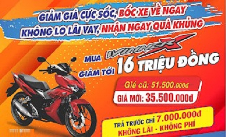 Tại Hải Phòng, nhà phân phối HP còn mạnh tay “chạy” mỗi tháng 3 ngày siêu khuyến mại, đưa giá chiếc xe Winner X từ bình quân 45 triệu đồng xuống còn 31 triệu đồng, bao gồm cả chi phí đăng ký.