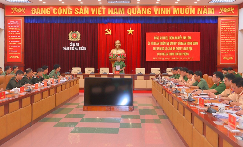 Phát biểu tại buổi làm việc, Thiếu tướng Nguyễn Văn Long, Ủy viên BTV Đảng ủy CATW, Thứ trưởng Bộ Công an thay mặt Đảng ủy CATW, lãnh đạo Bộ Công an biểu dương, ghi nhận những kết quả, thành tích nổi bật của CATP Hải Phòng đối với công tác bảo vệ ANTT nói chung, công tác bảo đảm an toàn PCCC&CNCH, bảo đảm TTATGT nói riêng, đồng thời đề nghị, trong thời gian tới, các lực lượng CATP tiếp tục bám sát sự chỉ đạo của Đảng ủy CATW, lãnh đạo Bộ Công an, thực hiện nghiêm túc, hiệu quả các mục tiêu, nhiệm vụ, giải pháp công tác đề ra; trước mắt là triển khai thắng lợi Đợt cao điểm tấn công, trấn áp tội phạm bảo vệ ANTT dịp Tết nguyên đán Quý Mão 2023, phục vụ nhân dân vui tết, đón xuân an toàn, góp phần vì cuộc sống bình yên của nhân dân.