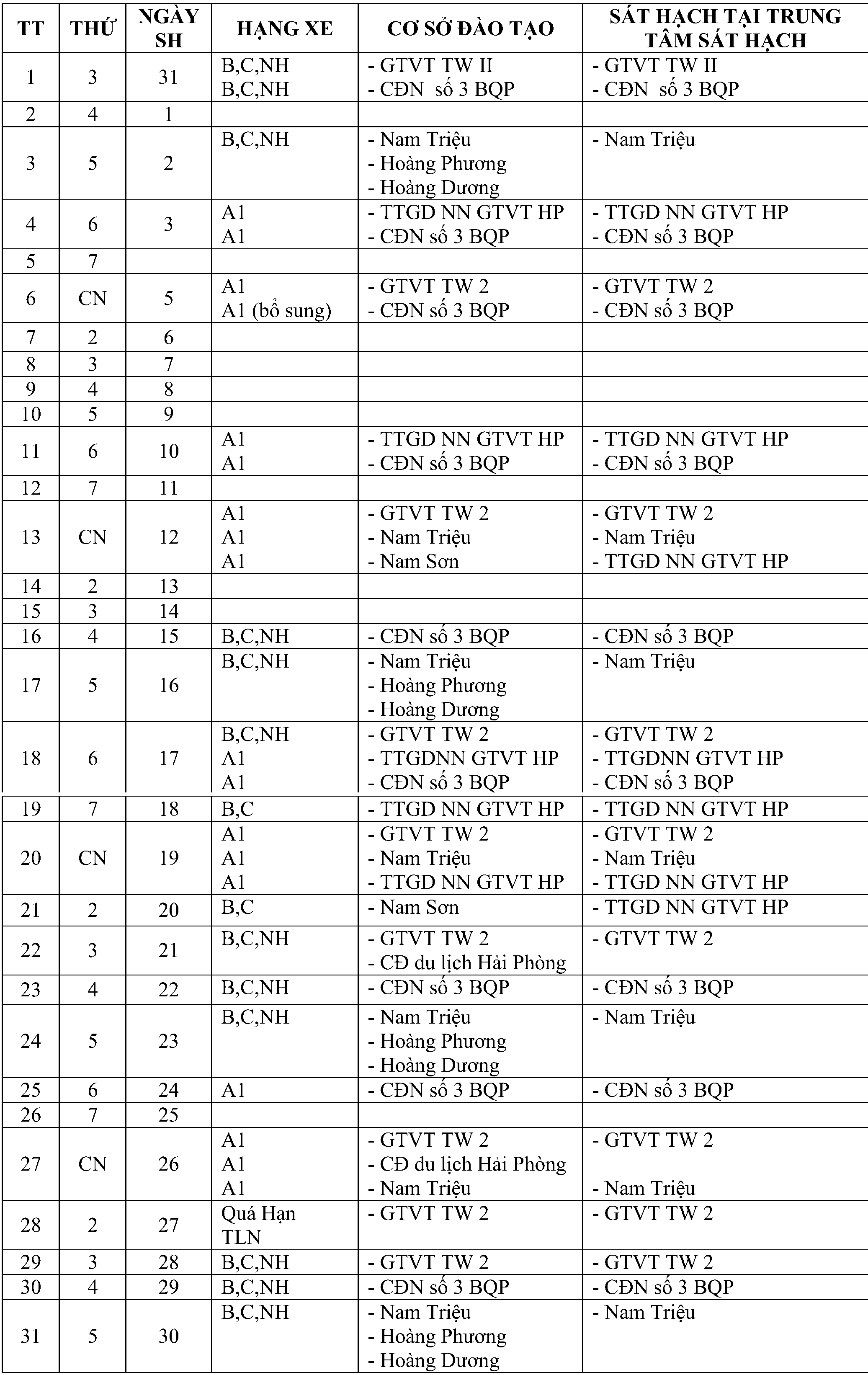 Căn cứ Kế hoạch số 35/KH-SGTVT ngày 23/5/2022 của Sở Giao thông vận tải Hải Phòng về lịch tổ chức sát hạch cấp giấy phép lái xe tháng 6 năm 2022; Xét tình hình thực tế về điều kiện tổ chức sát hạch của các trung tâm sát hạch lái xe và đề nghị của các cơ sở đào tạo lái xe trên địa bàn thành phố Hải Phòng;