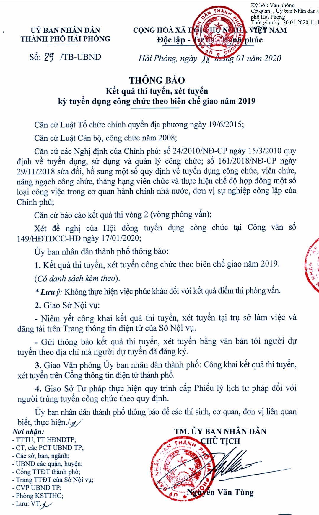 Ủy ban nhân dân thành phố Hải Phòng công bố kết quả thi tuyển, xét tuyển kỳ tuyển dụng công chức theo biên chế giao năm 2019