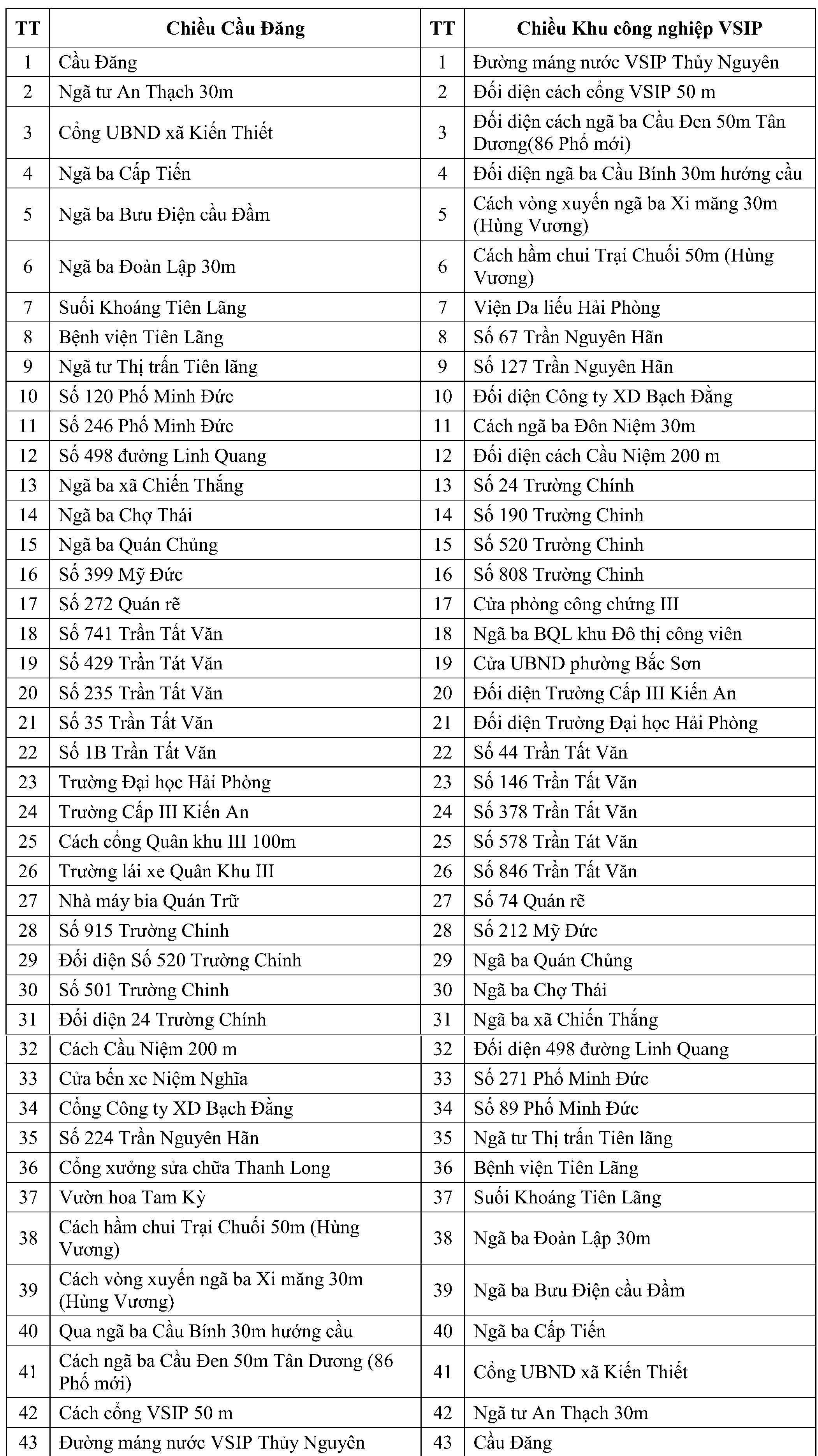 . Điểm cuối tuyến: Khu công nghiệp VSIP, huyện Thủy Nguyên.