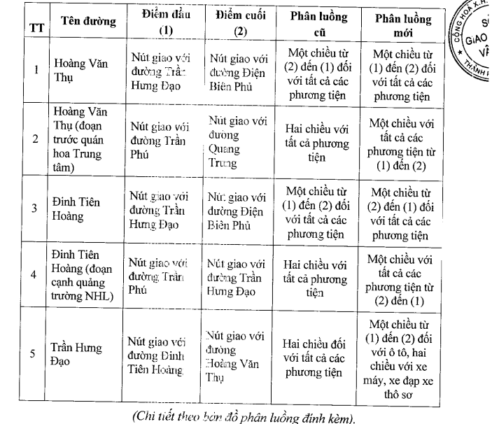 1. Kể từ 00 giờ ngày 12/10/2019, điều chỉnh phân luồng cụ thể như sau: