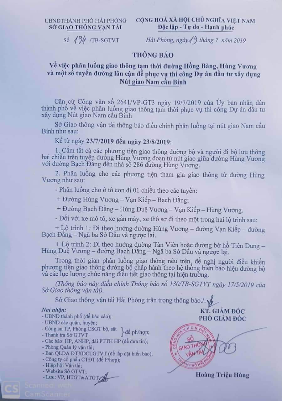 Thông báo phân luồng tạm thời đường Hồng Bàng, Hùng Vương