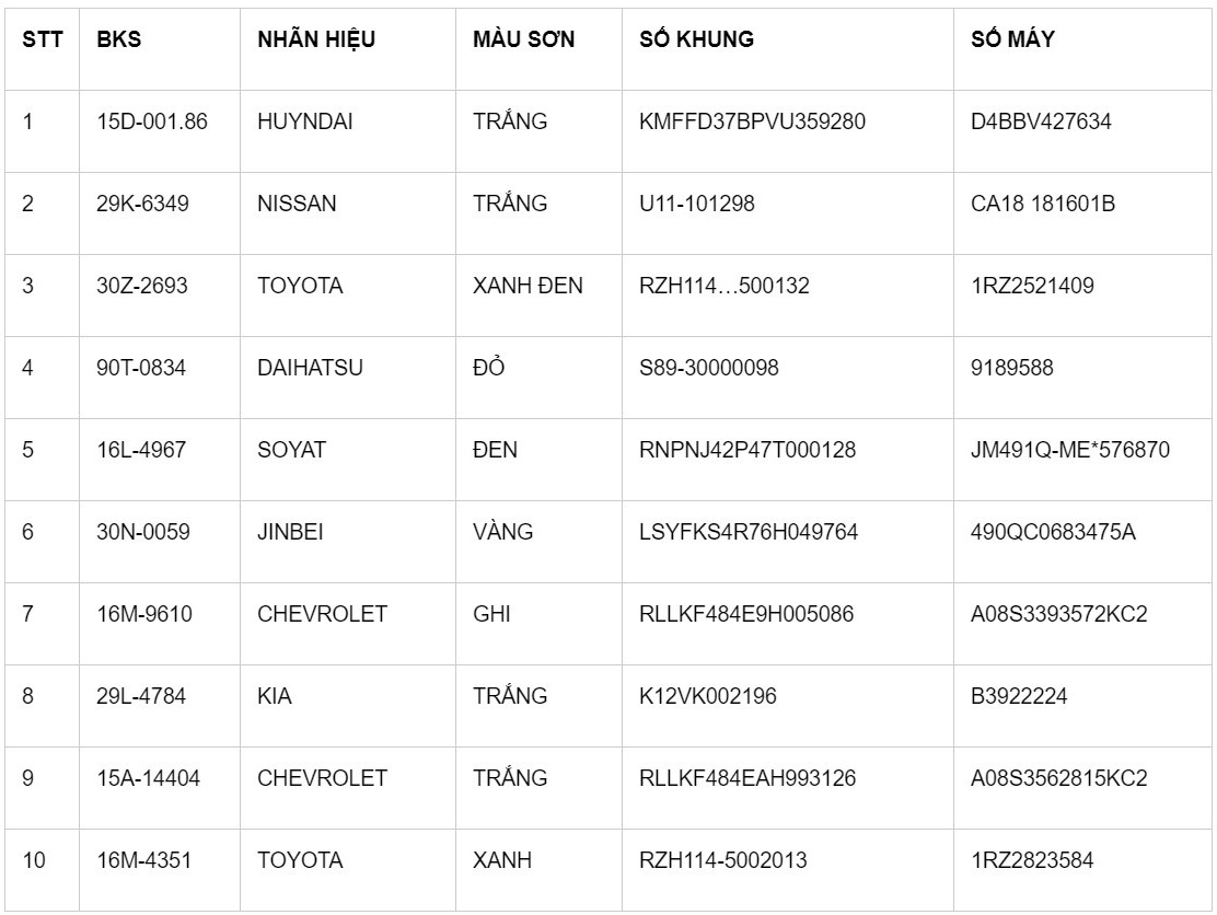 Phòng Cảnh sát giao thông đường bộ-đường sắt, Công an Thành phố Hải Phòng thông báo: Ai là chủ sở hữu hoặc có liên quan đến các phương tiện vi phạm hành chính về TTATGT đang bị tạm giữ mang đầy đủ giấy tờ hợp lệ (Đăng ký xe + Chứng minh nhân dân hoặc Căn cước công dân) đến Phòng Cảnh sát giao thông đường bộ-đường sắt, Công an Thành phố Hải Phòng; Địa chỉ: Số 14 Phan Chu Trinh, Hồng Bàng, Hải Phòng để giải quyết.