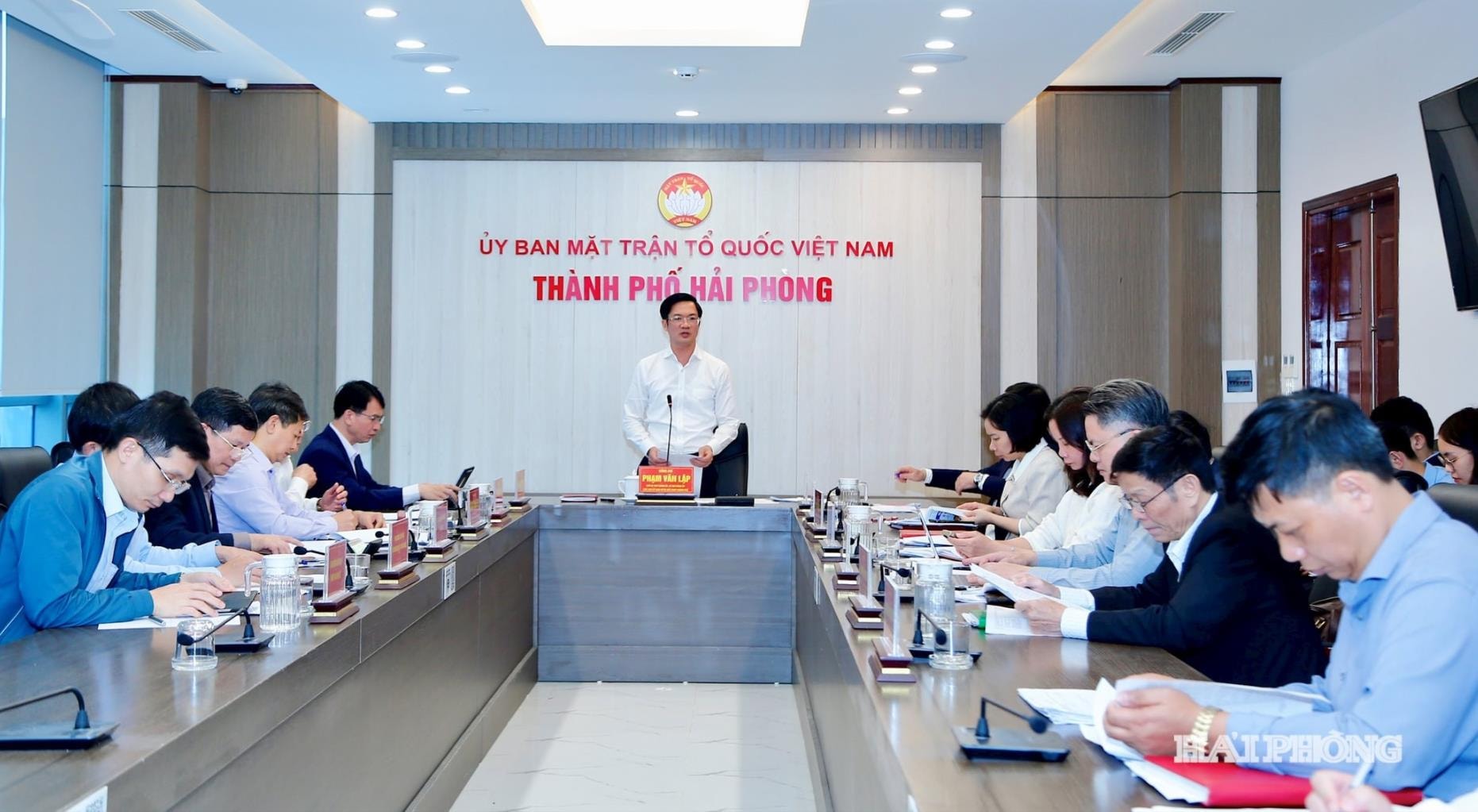 Đồng chí Phạm Văn Lập, Phó Bí thư Thành ủy, Chủ tịch Ủy ban MTTQ Việt Nam thành phố, Phó Chủ tịch Uỷ ban Bầu cử thành phố chủ trì hội nghị.
